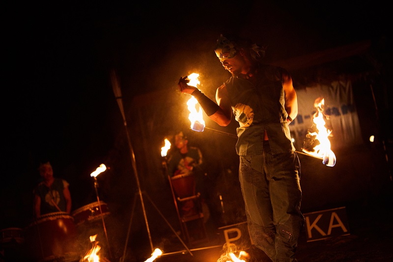 和太鼓、ジャンベの生演奏に合わせて、炎が舞い、炎を食べる!? 迫力ある演舞に息をのみます。