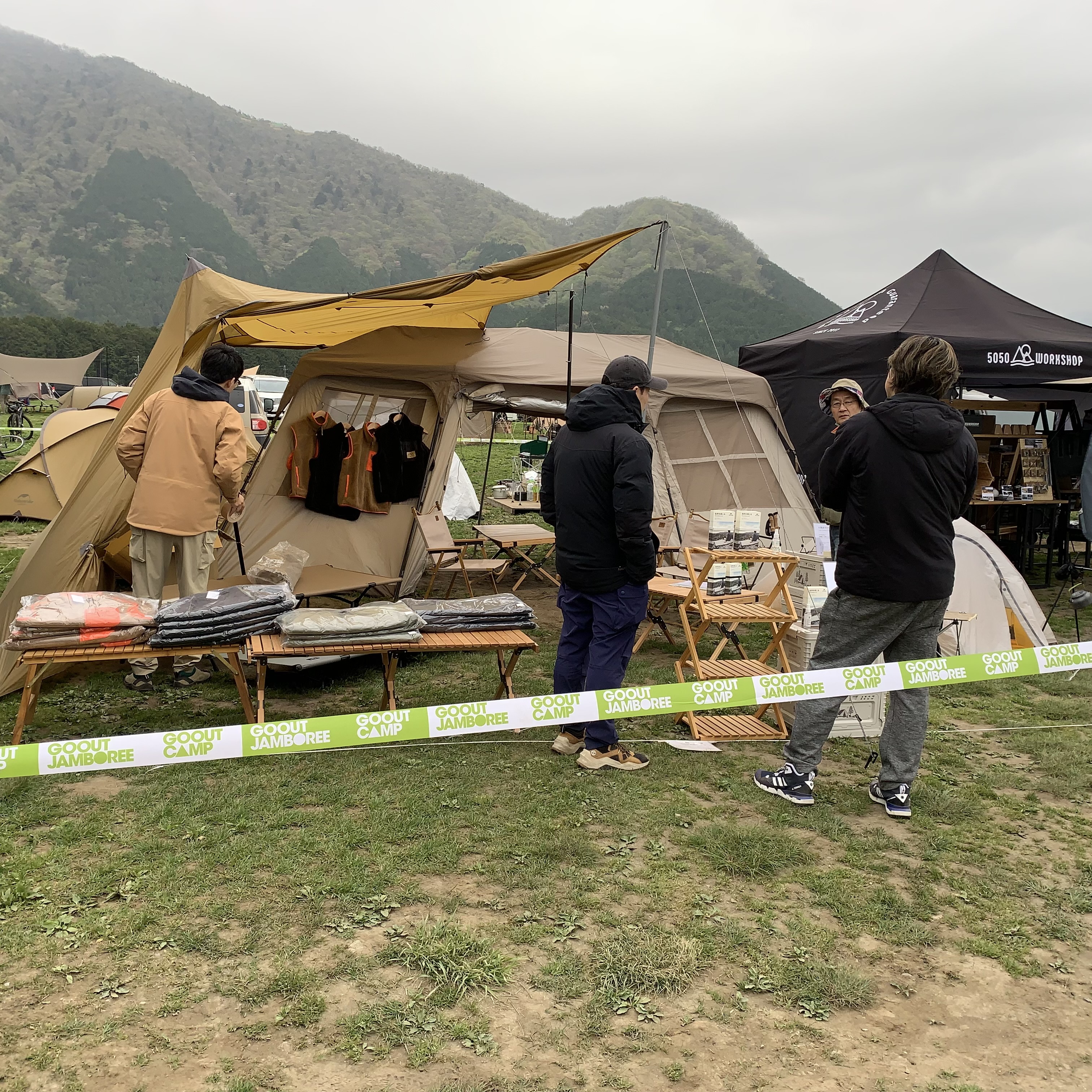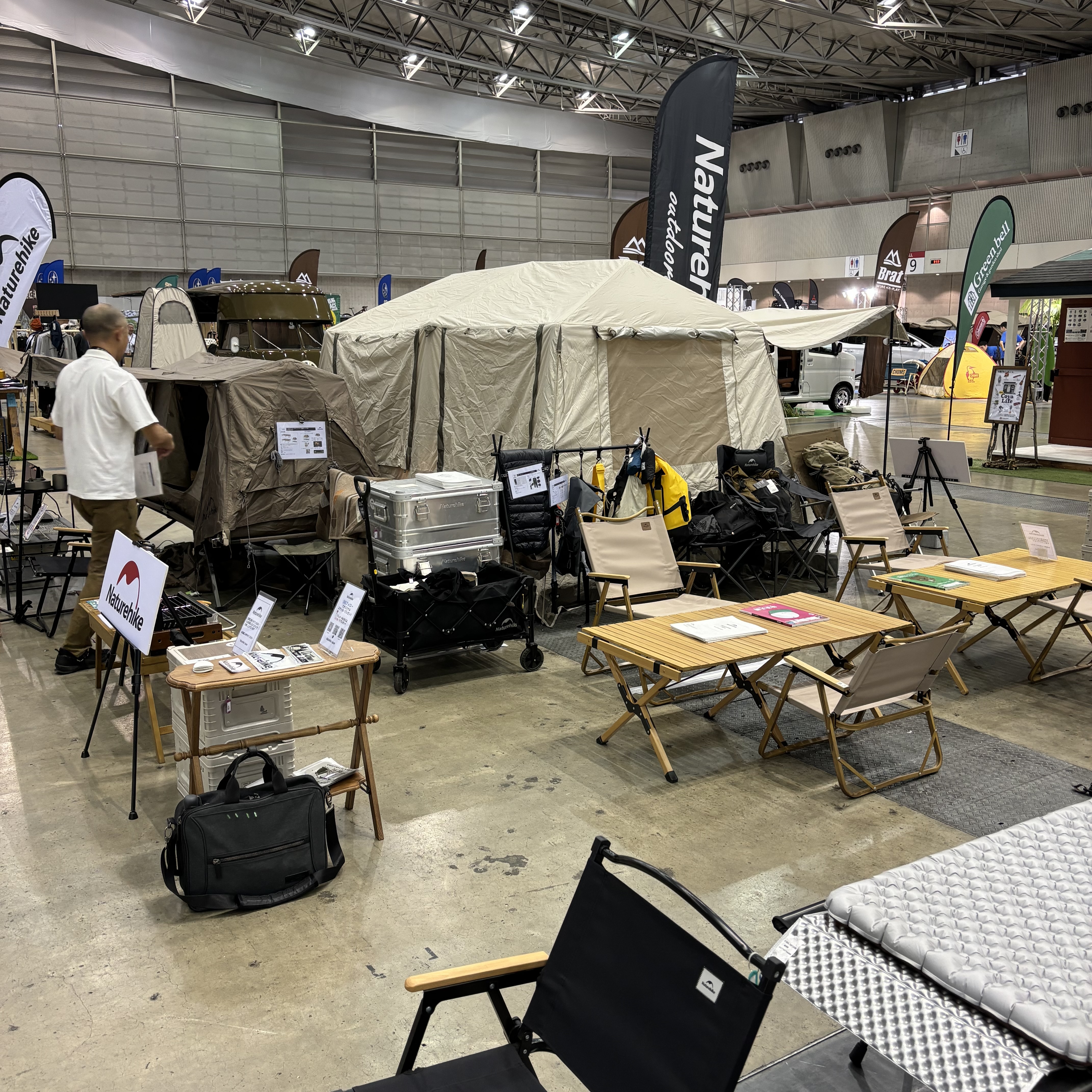 新商品の展示(テント・タープ・寝袋など)