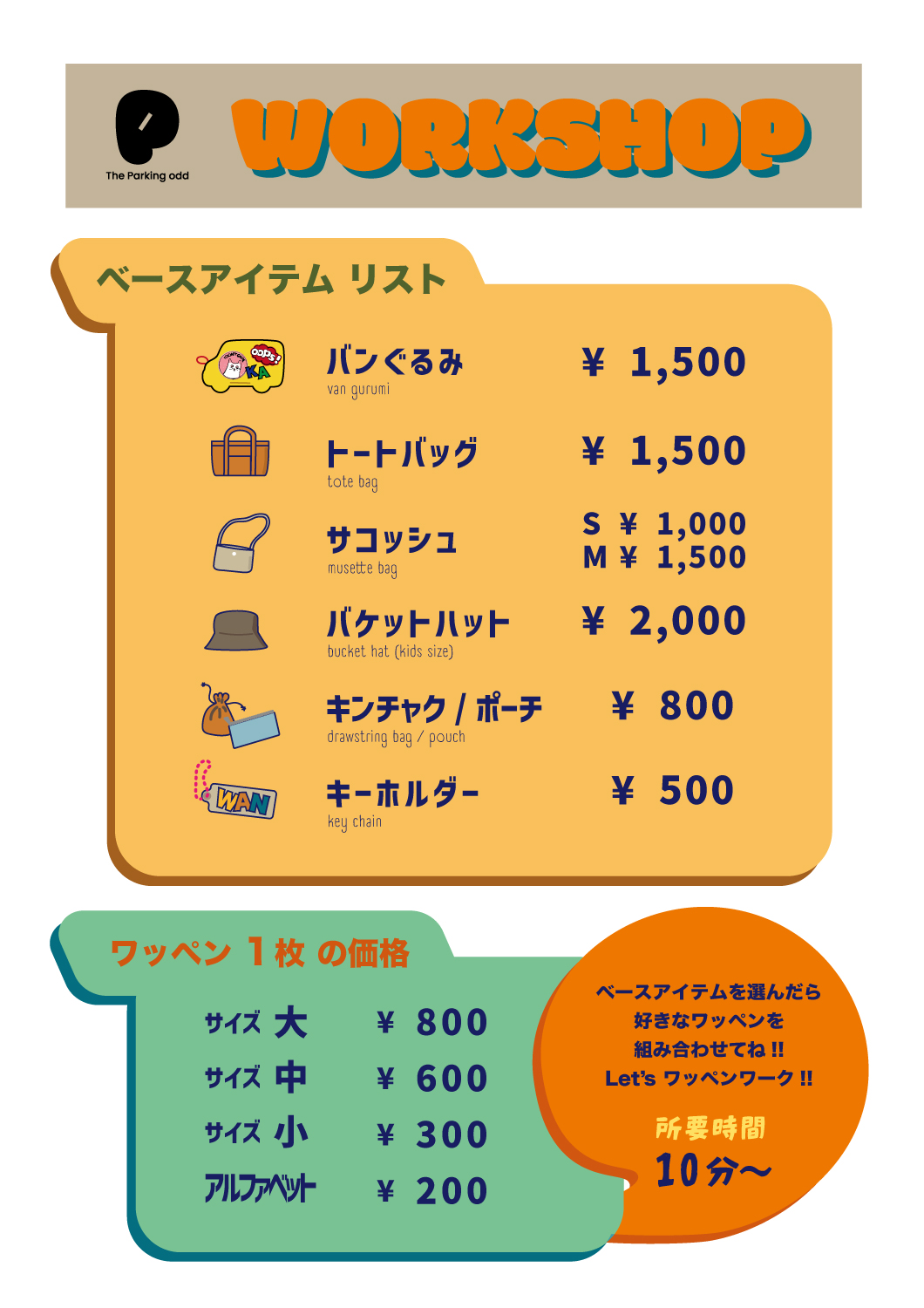 国内外で買い付けた700種類以上のワッペンを自由にアレンジして楽しむワークショップ! ぬいぐるみやキーホルダー、バッグや帽子など、お気に入りのワッペンから始まる創作意欲に火がつくこと間違いなし!