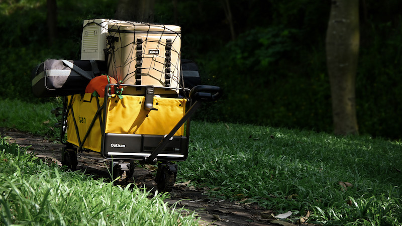 キャンプ場で荷物を運ぶのにベストなギア「キャリーワゴン」。そのキャリーワゴンの世界初となる電動モデルを開発したのがブランド「Outisan」。