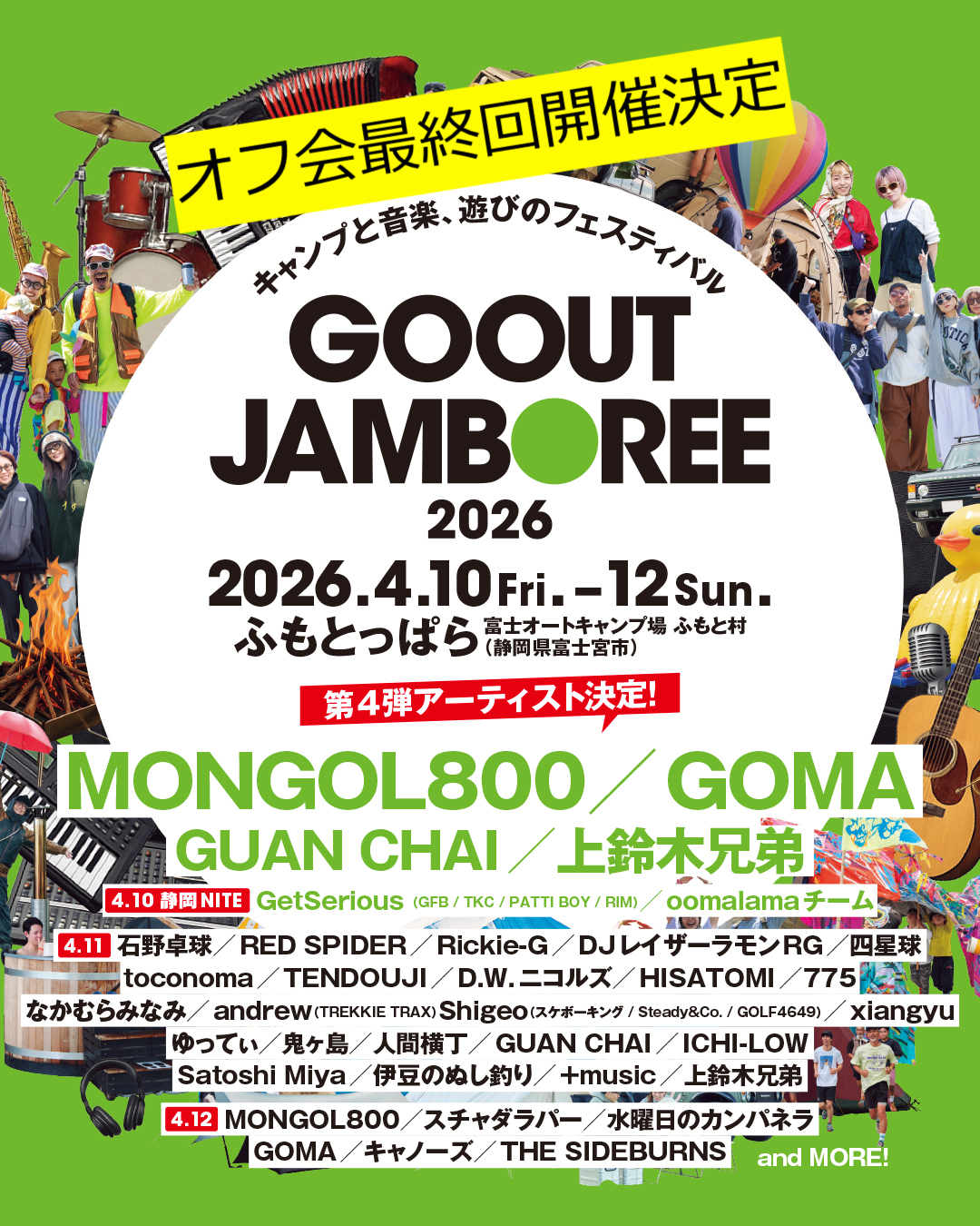 4月10日(金)〜12日(日)まで開催のGO OUT JAMBOREE 2026に向けたオフ会の最終回が開催決定! 福島県猪苗代/栃木県足利市/京都府笠置町と回ってきて、最終回は山梨県道志村にある「水源の森キャンプ・ランド」にて開催します。