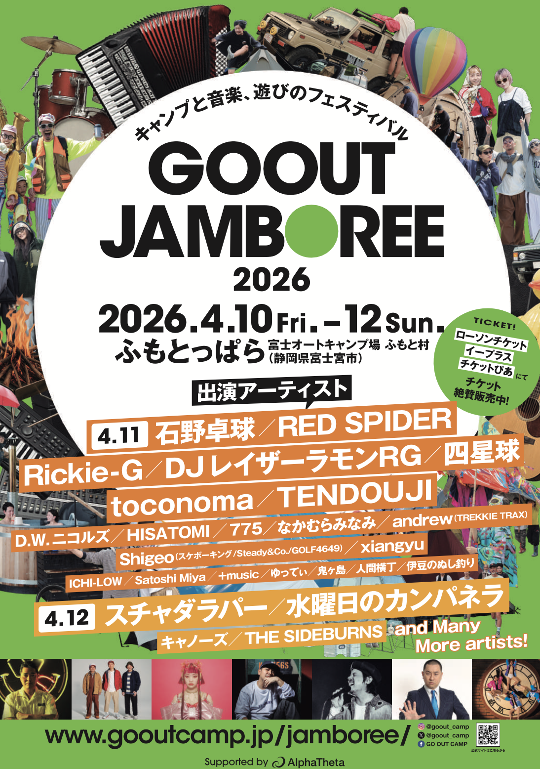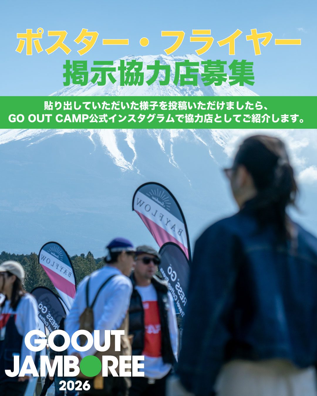 関東地方、中部地方、近畿地方の方で、お店にポスターを貼ったり、フライヤーを置いていただき、GO OUT JAMBOREE 2026 を一緒に盛り上げていただける店舗様を募集します!!
