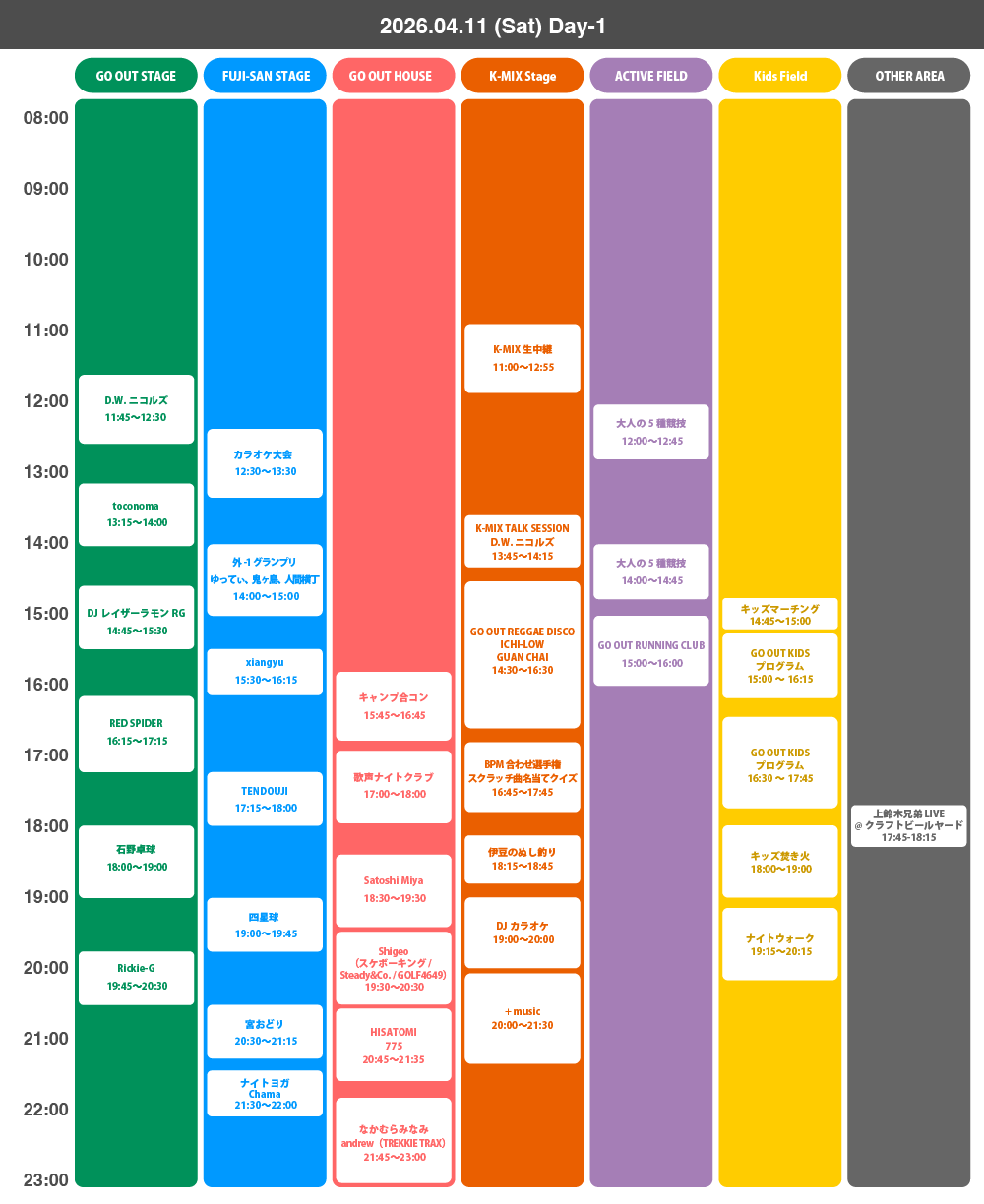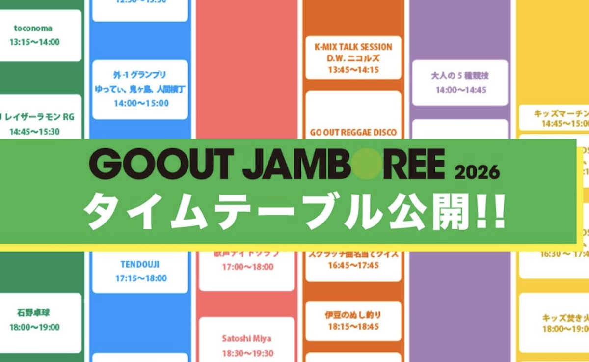 今年のGO OUT JAMBOREEを彩るアーティストたちの出演時間がついに発表されました。